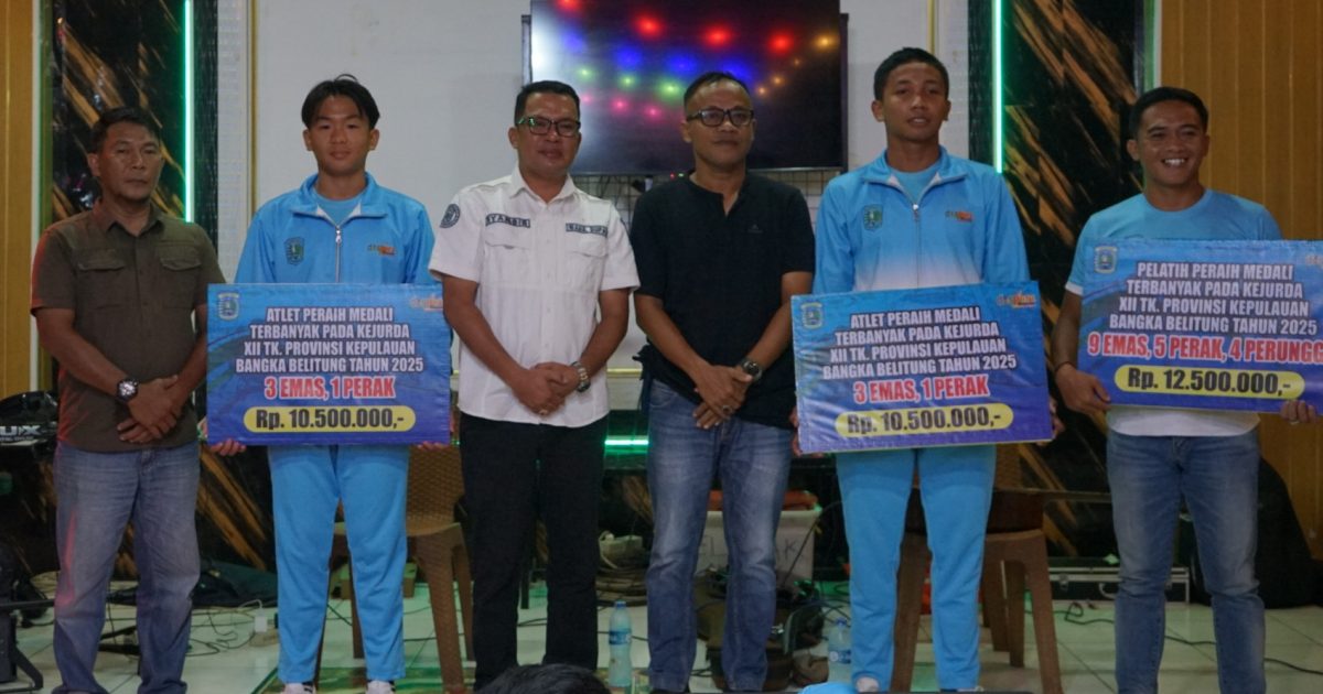 Tanjungpandan, Media Center – Pemerintah Kabupaten Belltung melalui Dinas Pemuda dan Olahraga Kabupaten Belitung berikan penghargaan untuk sejumlah atlet dan pelatih, Selasa (7/10/2025). Penghargaan berupa bonus ini diberikan kepada atlet dan pelatih yang meraih medali pada gelaran Kejurda pelajar ke XII tingkat Provinsi Bangka Belitung, di Belitung Timur dan Sungai Liat beberapa waktu lalu.